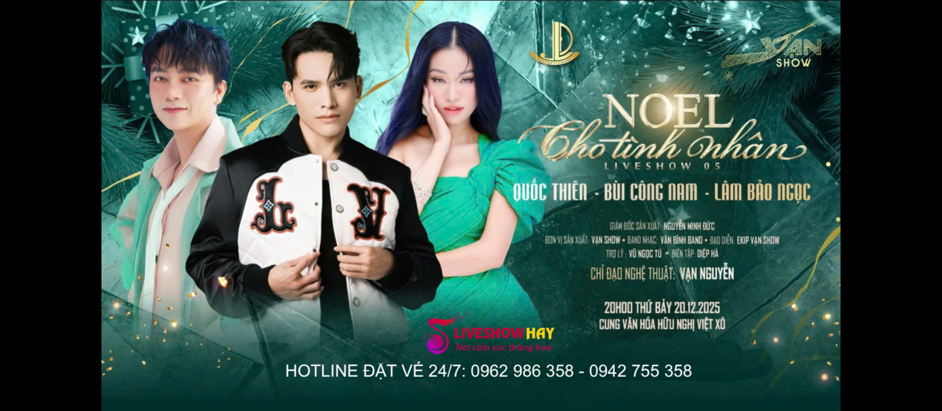Bán Vé Đêm Nhạc Liveshow Quốc Thiên, Bùi Công Nam, Lâm Bảo Ngọc – Noel Cho Tình Nhân ngày 20/12/2025 tai Hà Nội – Vé Đẹp Từ Ban Tổ Chức
