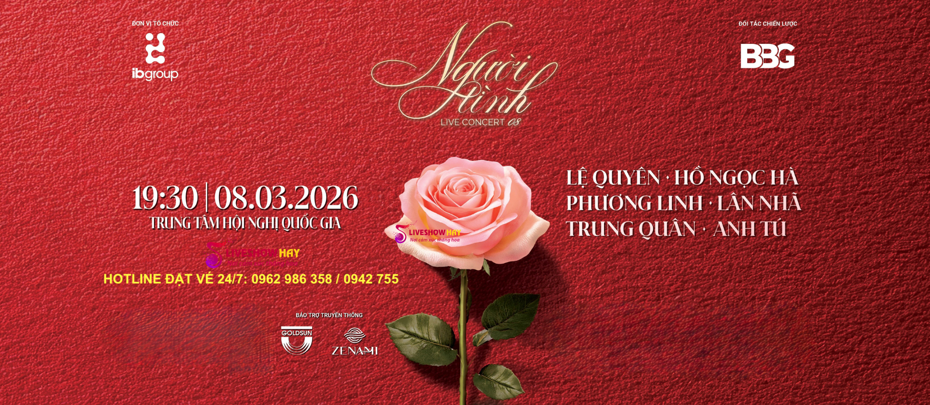 BÁN VÉ LIVESHOW ĐÊM NHẠC – LIVECONCERT NGƯỜI TÌNH 8 – LỆ QUYÊN, TRUNG QUÂN IDOL, HỒ NGỌC HÀ … – ĐIỂM HẸN YÊU THƯƠNG NGÀY 08/03/2026 TẠI HÀ NỘI – VÉ ĐẸP TỪ BAN TỔ CHỨC