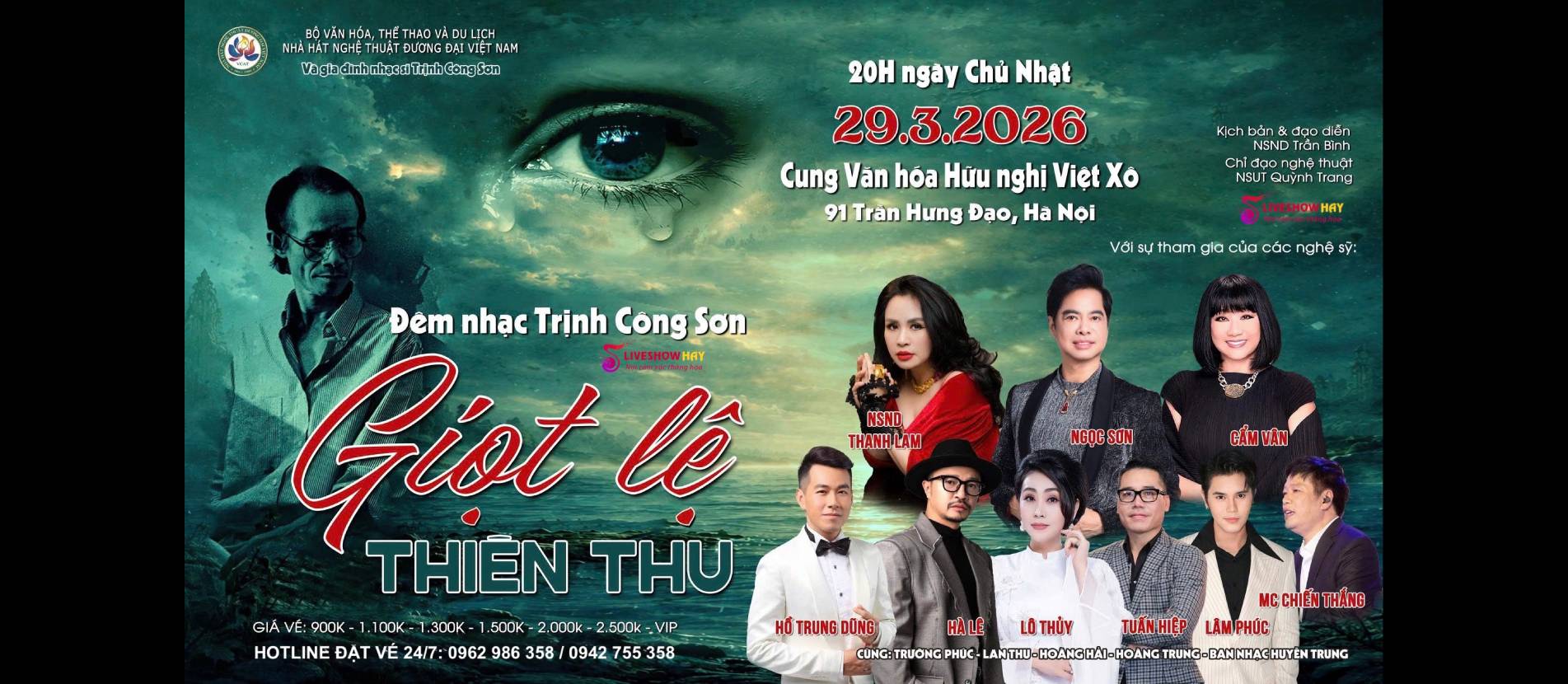 • Bán Vé Liveshow Đêm Nhạc Trịnh Công Sơn – Giọt Lệ Thiên Thu ngày 29/3/2026 tại Hà Nội – Vé Đẹp Từ Ban Tổ Chức