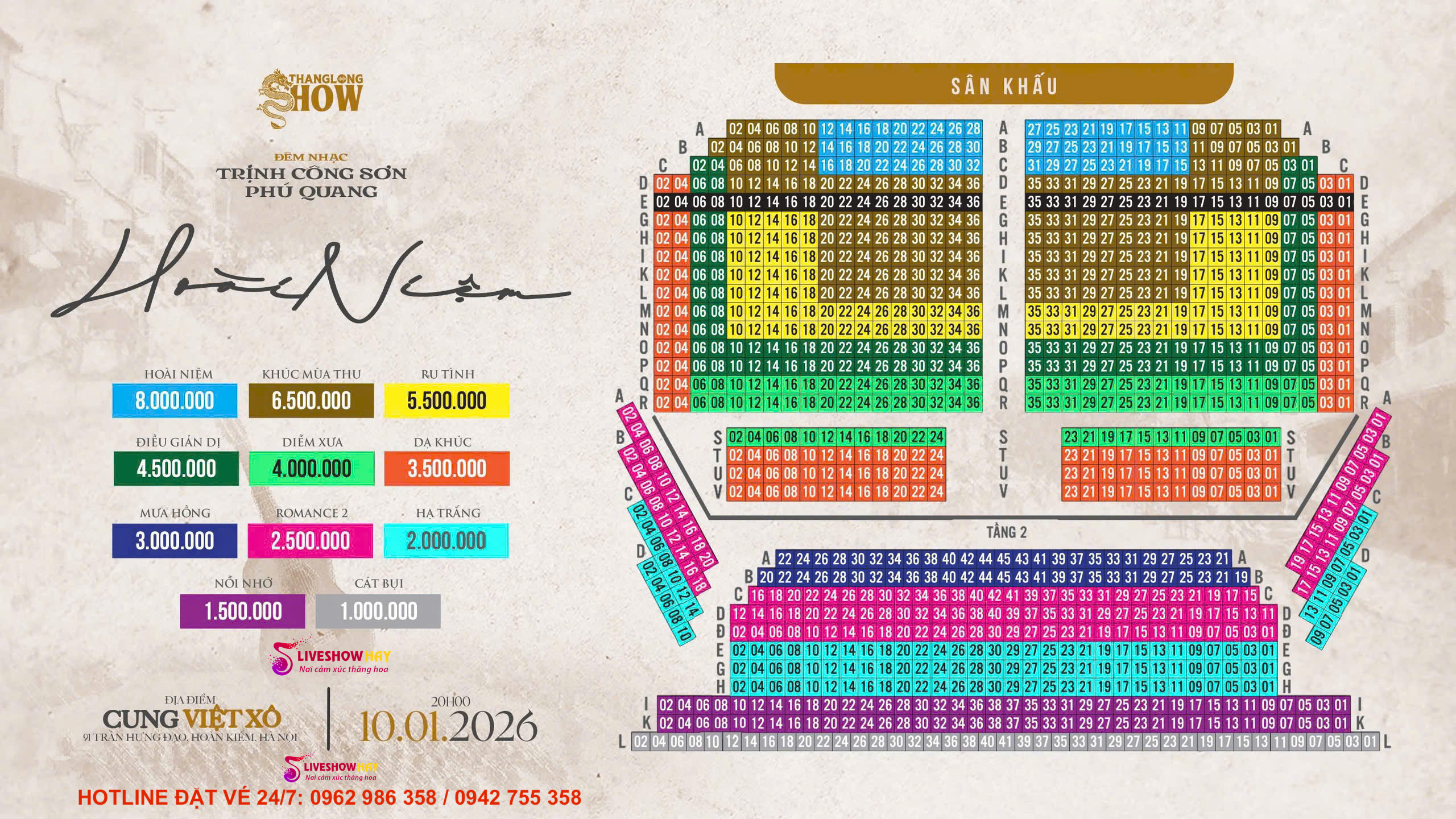 Mua Vé Liveshow Đêm Nhạc Trịnh Công Sơn, Phú Quang – Hoài Niệm Ngày 10/01/2026 Tại Hà Nội – VÉ ĐẸP TỪ BAN TỔ CHỨC. Gọi mua vé : 0942 755 358 / 0962 986 358 – (Xem SƠ ĐỒ VÉ bên dưới bài viết)