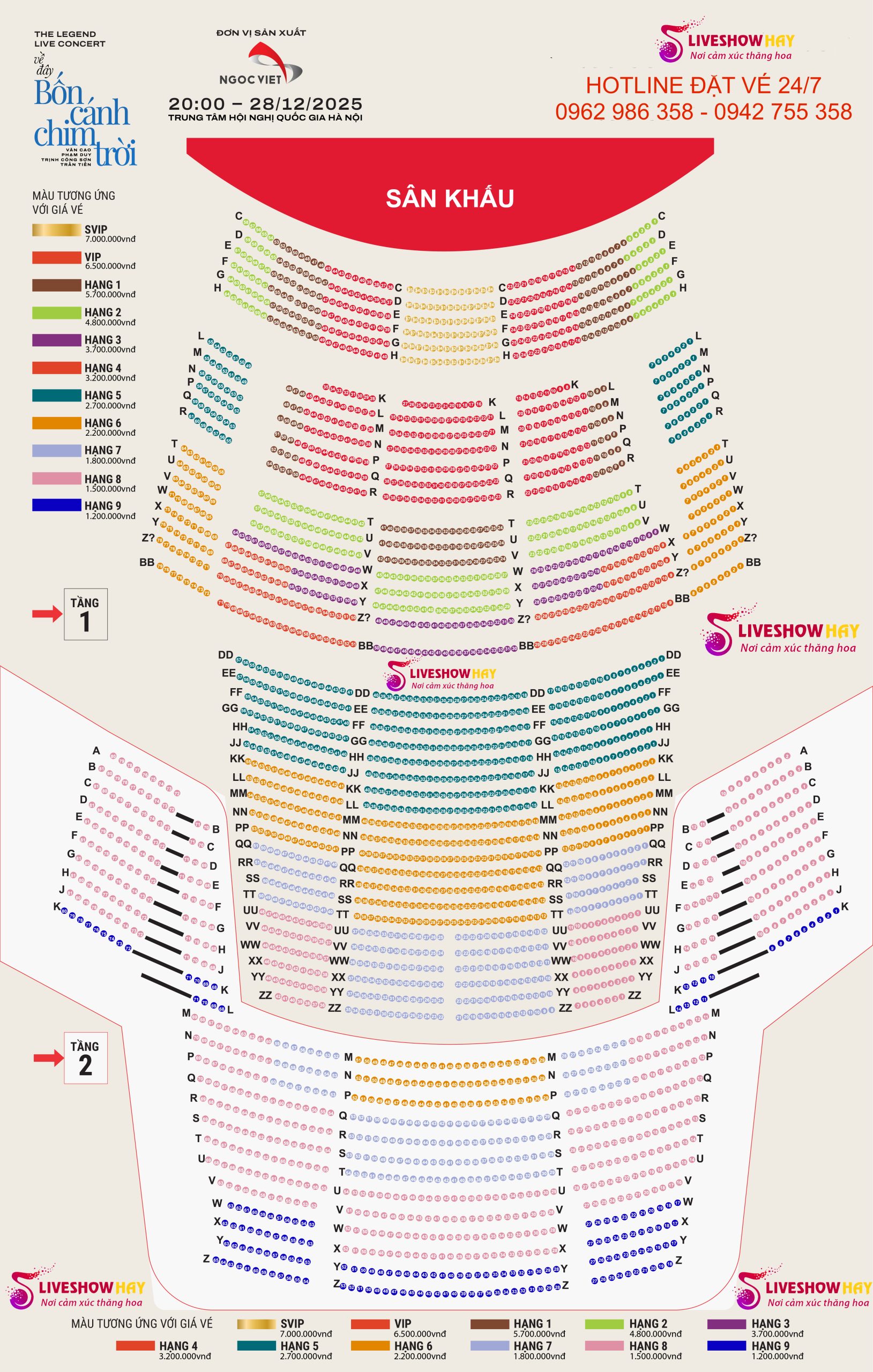 Mua Vé Liveshow Đêm Nhạc Về Đây Bốn Cánh Chim Trời – The Legend Live Concert – Nhạc Sỹ Trần Tiến, Trịnh Công Sơn, Văn Cao, Phạm Duy ngày 28/12/2025 tại Hà Nội – VÉ ĐẸP TỪ BAN TỔ CHỨC. Gọi mua vé : 0942 755 358 / 0962 986 358 – (Xem SƠ ĐỒ VÉ bên dưới bài viết)