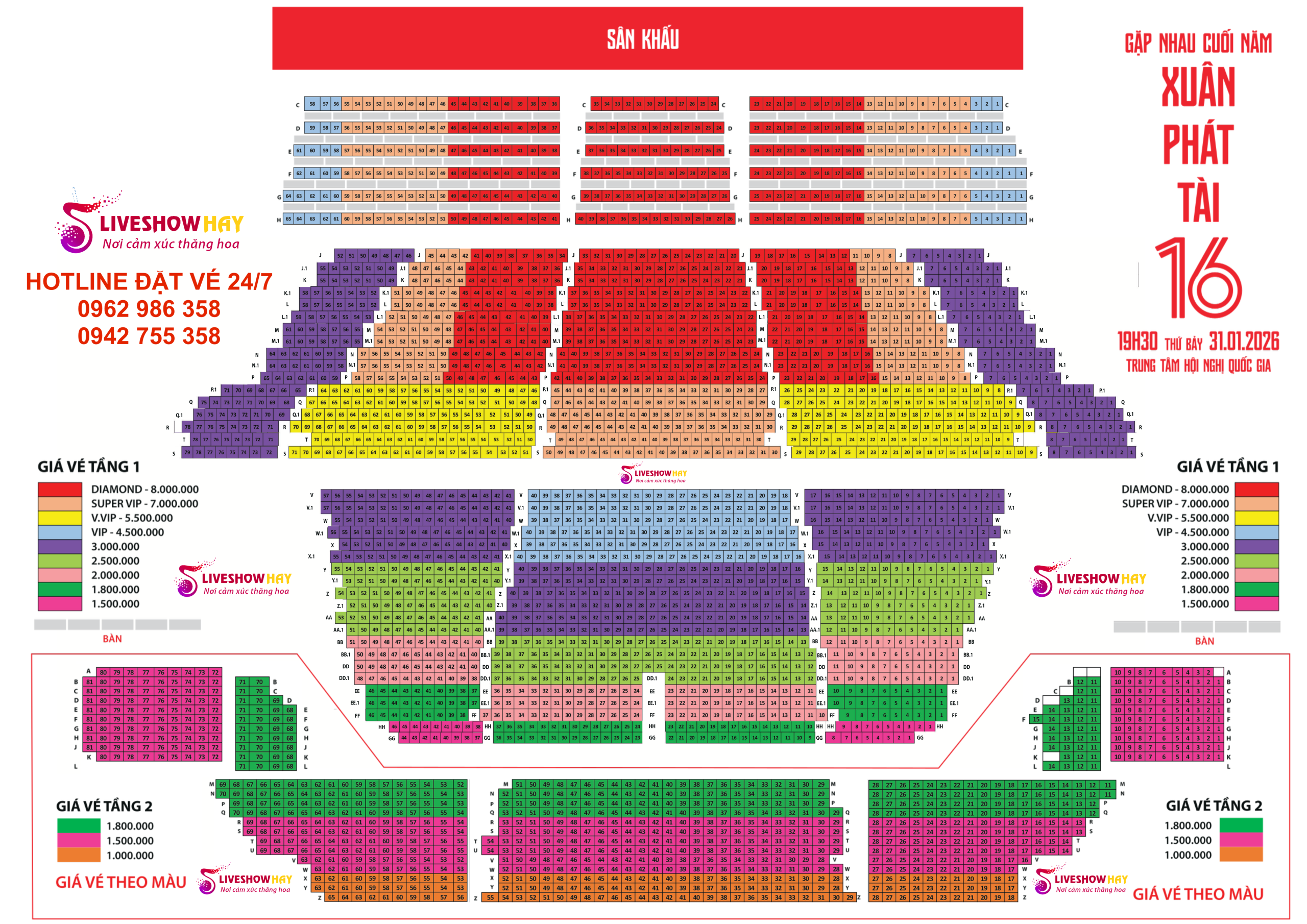 Mua Vé Liveshow Đêm Nhạc Xuân Phát Tài 16 – Gala Gặp Nhau Cuối Năm – ngày 31/1/2026 tại Hà Nội – Vé Đẹp Từ Ban Tổ Chức. Gọi mua vé : 0942 755 358 / 0962 986 358 – (Xem SƠ ĐỒ VÉ bên dưới bài viết)